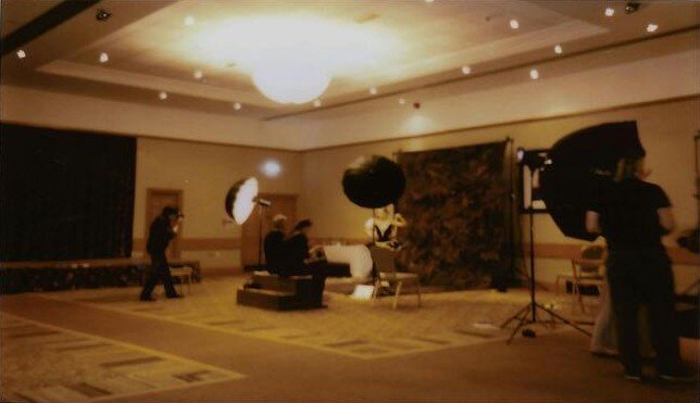 Aperture: f/1.8, f/2.8 for the close-up shot of the one single person with a blur of nicely parted background, f/4 for the shot of a small group, and f/8, f/11 for the room interior when everything must be perfectly sharp.